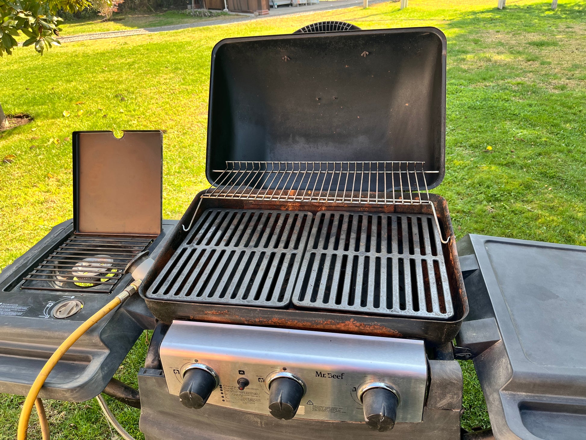 Parrilla a gas con cocinilla lateral – usada, en excelente estado.