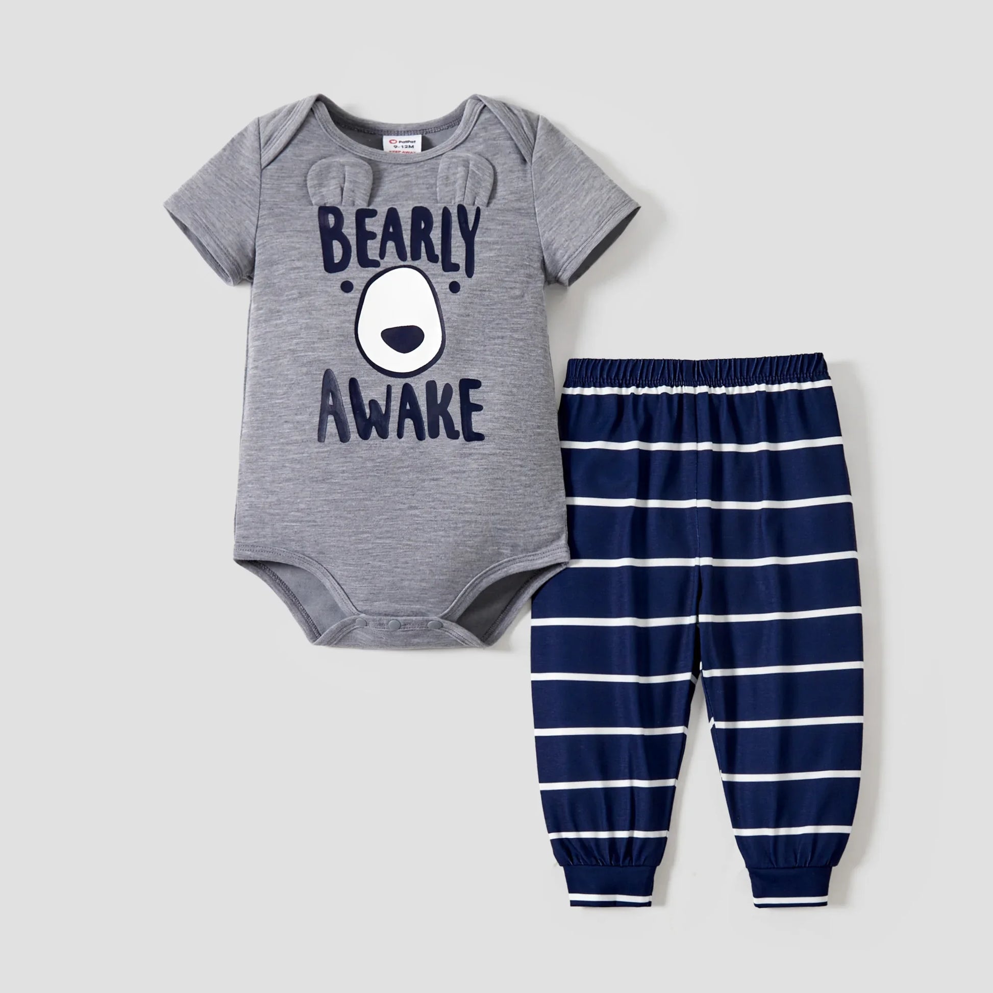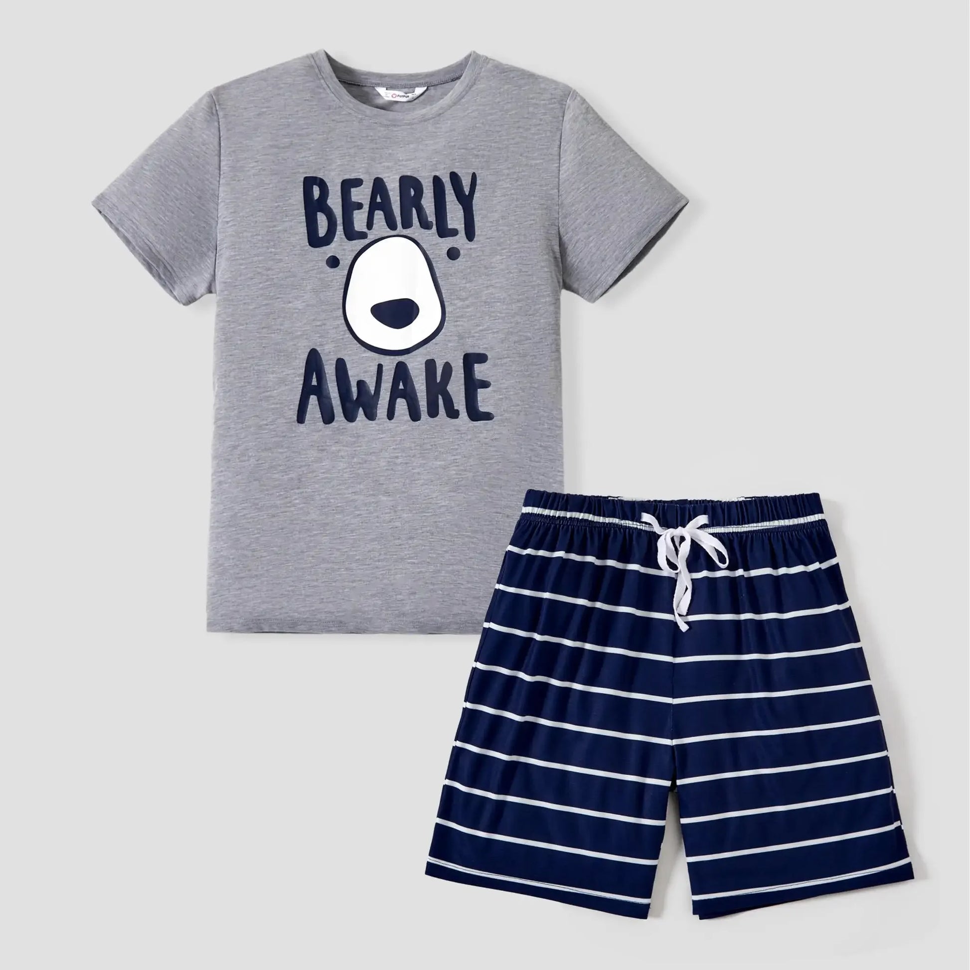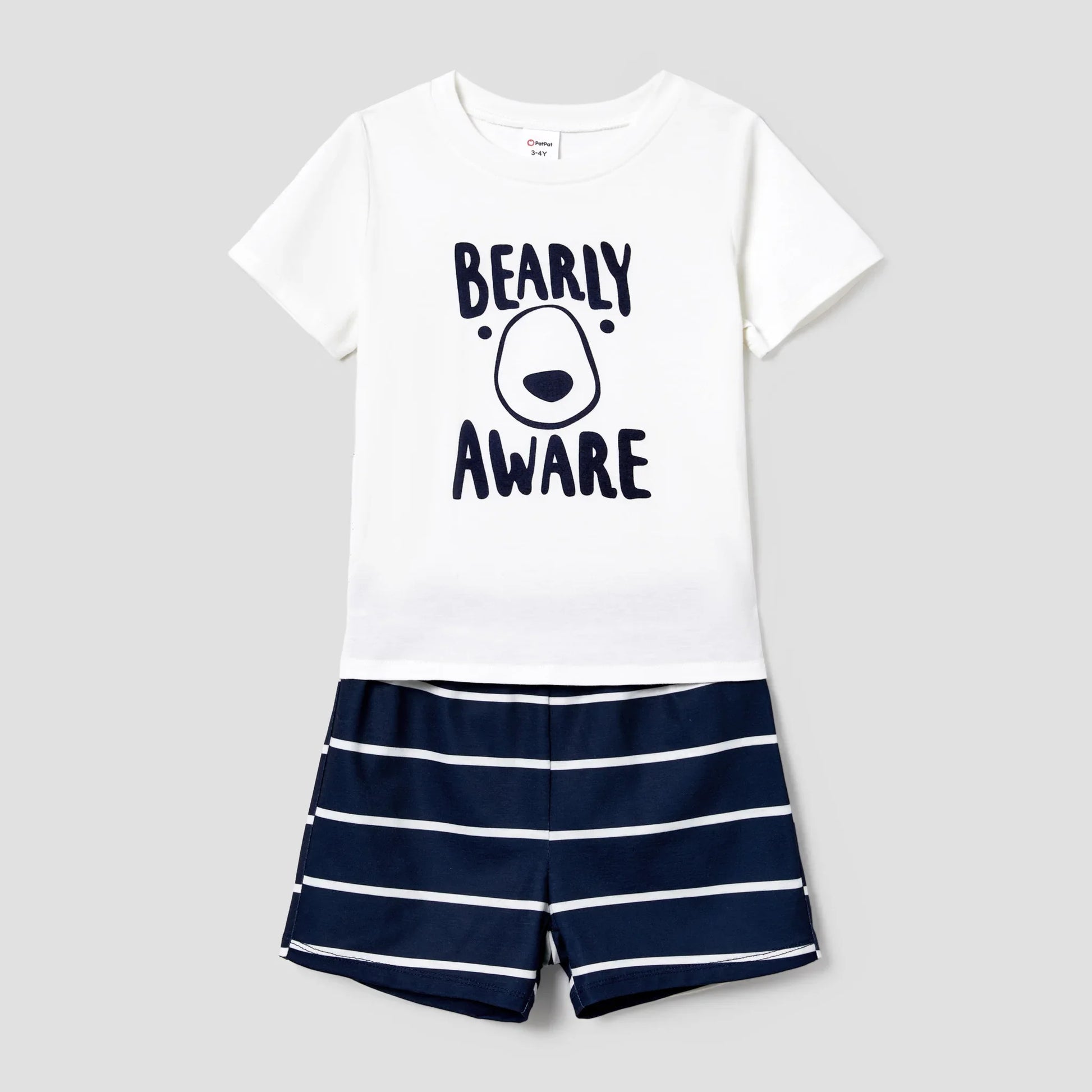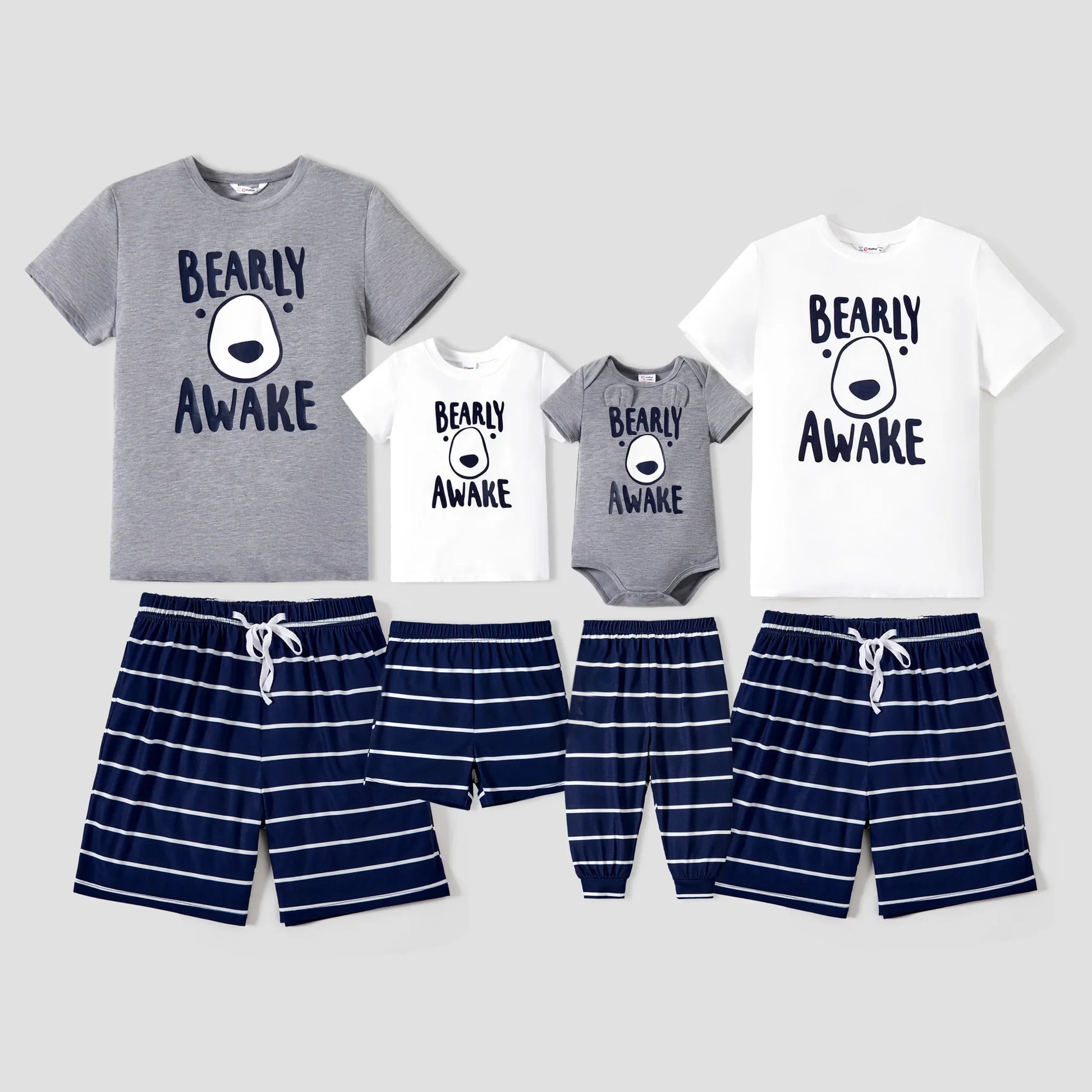 Pijamas de Verano para la Familia 'BEARLY AWAKE' con Caras de Oso y Rayas. COMPRA INTERNACIONAL